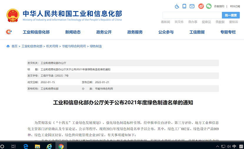 2022121日工信部節能司正式發布2021年度國家級綠色工廠名單,河冶科技股份有限公司作為河北省入選單位榜上有名,成為2021年度662家國家級綠色工廠之一。